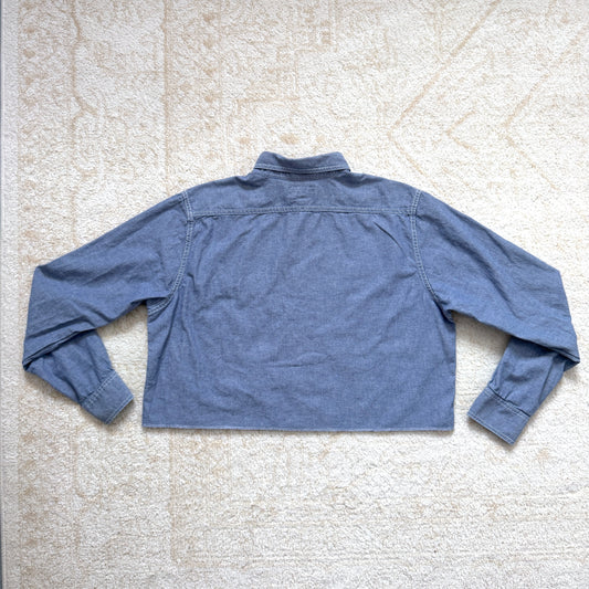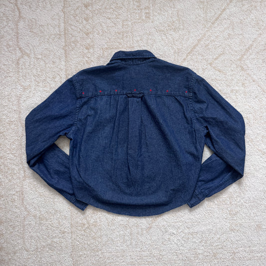 scrap button down - chambray denim w/ dark panel & red floral